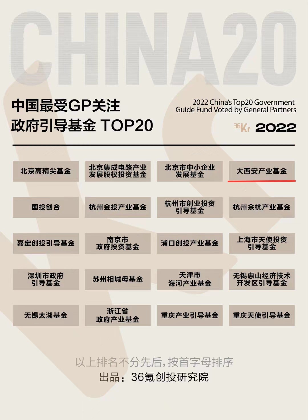 2022年9月21日,在36氪“2022 置身事內(nèi)·中國基金合伙人峰會”上,36氪創(chuàng)投研究院公布了2022年度「本土市場」、「白馬/黑馬」以及「最受GP關注LP」三大系列年度榜單。在「最受GP關注LP」系列榜單中,大西安產(chǎn)業(yè)基金榮獲“中國最受GP關注政府引導基金TOP20”,西安產(chǎn)業(yè)投資基金管理有限公司榮獲“中國最受GP關注市場化母基金TOP20”。
