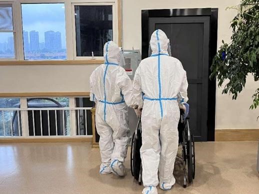 3、隨后,醫(yī)生安撫發(fā)熱長者,并退出長者居室,關(guān)閉入戶門并張貼“隔離區(qū)”標識,同時立刻匯報于院內(nèi)領導;